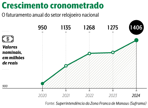 O que explica esse fenômeno? Na avaliação de Joaquim Ribeiro, presidente da fabricante de relógios Technos, aconteceu uma mudança no foco dos consumidores. Se antes a motivação mais comum era a funcionalidade, agora o foco está no relógio como um objeto aspiracional. “Uma parcela do mercado consome nossos produtos para compor o visual. Outra usa os modelos como símbolo de status. E ganhou força, recentemente, o segmento dos colecionadores entusiastas, interessados nos mecanismos e nos materiais utilizados”, afirma Ribeiro. Só no último trimestre de 2024, a Technos experimentou um crescimento de 24% na receita líquida.