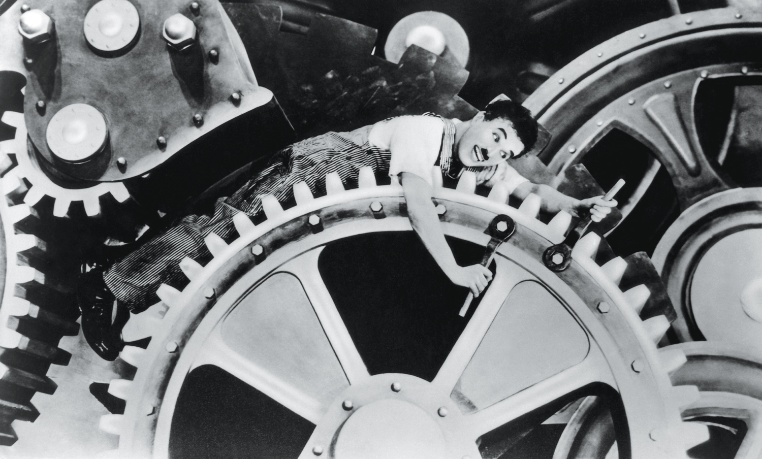 O advento da voz na tela provocou um rearranjo que obrigou astros da era muda como Charles Chaplin, de Tempos Modernos, a se adaptar ou sumir