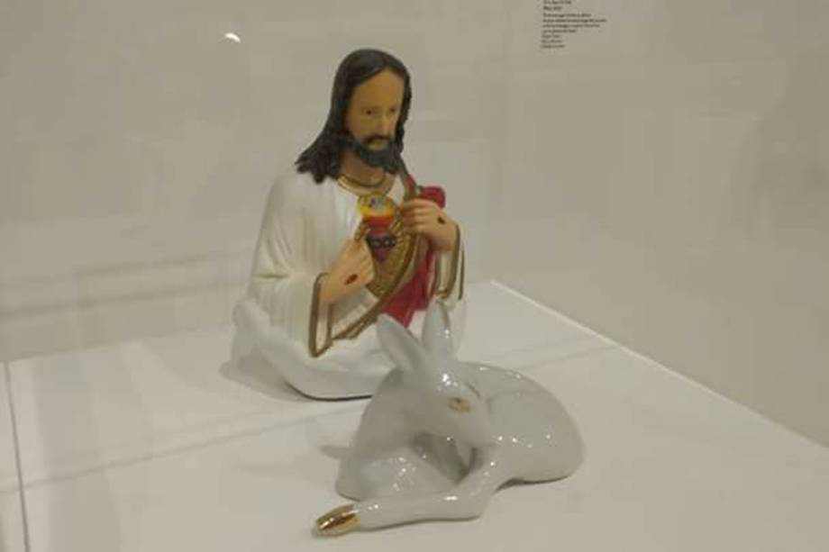 “Há pouco tinha crianças olhando essa ‘arte’ escarnecendo a Cristo”, disse o blogueiro Felipe Diehl, durante o vídeo em que ele circula pela exposição e critica as obras acompanhado de outro blogueiro, Rafinha BK, do MBL de Porto Alegre. “Olha o Satanás no meio”, diz Rafinha sobre outra obra. No vídeo, os blogueiros censuram as imagens com um “borrão”. A obra “Cruzando Jesus Cristo com Deusa Shiva”, de 1996, de Fernando Baril, (abaixo) retrata “as inúmeras pernas e braços da figura que reverberam pela superfície da pintura, exibindo objetos de toda ordem nas mãos e pés, muitos deles relacionados à história da arte e à cultura pop”, explica Fidelis no catálogo.