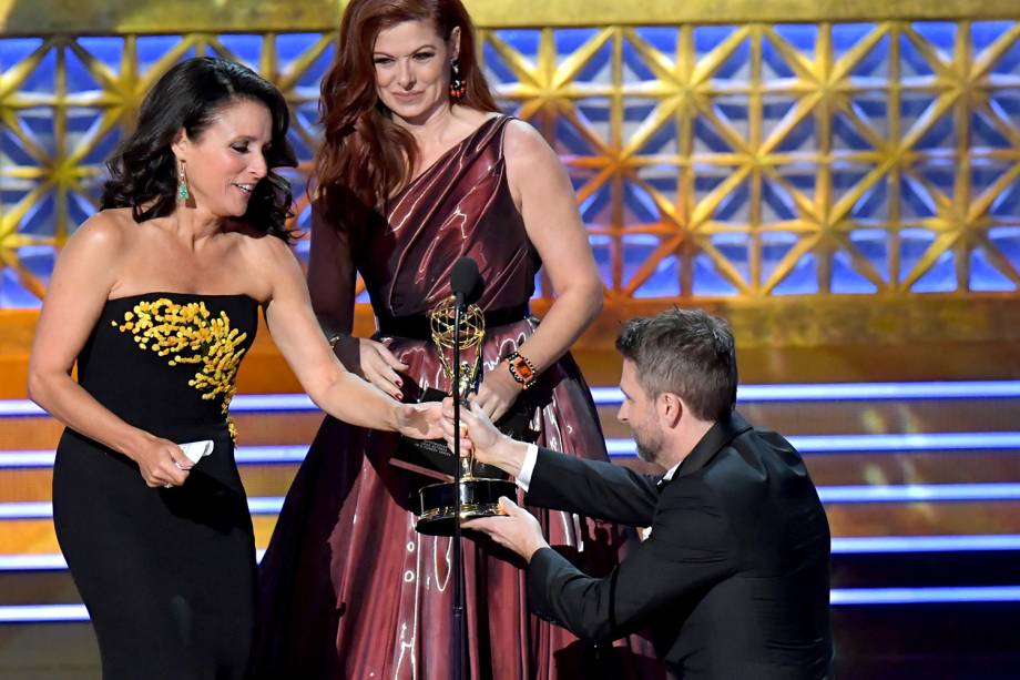 23:18: Nada surpreendente: Julia Louis-Dreyfus ganha o troféu de melhor atriz em série cômica por Veep. É sua sexta vitória – um recorde. Nenhuma outra atriz venceu tantas vezes pelo mesmo papel. “Tínhamos um episódio sobre impeachment, mas não exibimos porque imaginávamos que outra pessoa poderia sofrer um impeachment antes”, disse a atriz em seu discurso. Alô, Trump.