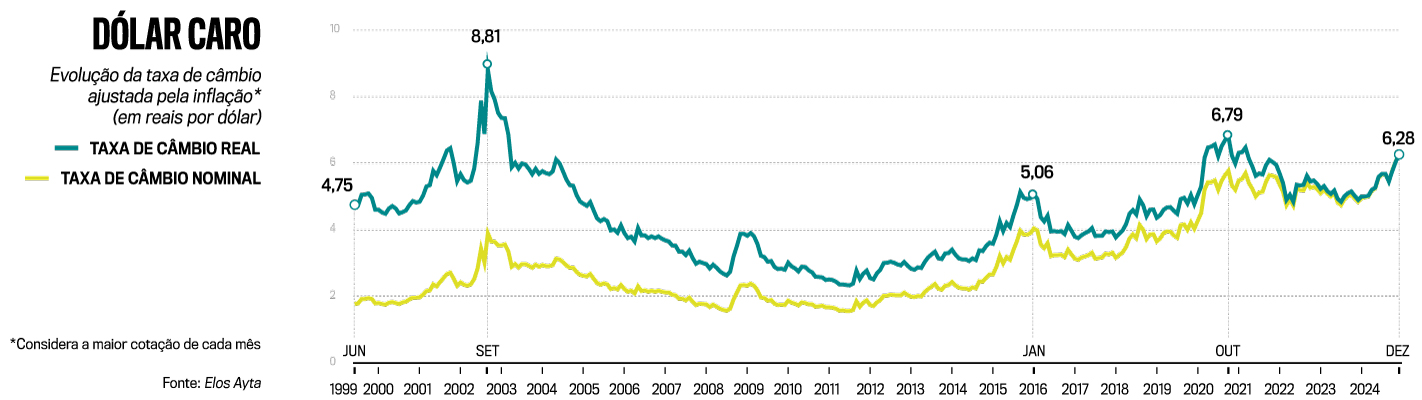 A crise explodiu no fim de novembro, quando o dólar, que começara o ano em 4,80 reais, passou dos 6 reais pela primeira vez e experimentou os 6,30. Foi uma resposta direta ao aguardado pacote de contenção de gastos anunciado pelo ministro da Fazenda, Fernando Haddad, mas que, com medidas julgadas insuficientes para o tamanho do buraco, acabou tendo o efeito oposto e derrubou de vez o humor dos investidores. Ao mesmo tempo, há ainda a avaliação de que a economia está crescendo mais do que o país dá conta — retroalimentando a inflação — e de que a volta de Donald Trump à Presidência dos Estados Unidos deverá atrasar o corte dos juros por lá, um desafio adicional para Jerome Powell, presidente do Fed, o banco central americano. “O mercado também erra, mas a desancoragem fiscal virou uma crise de confiança”, diz Gabriel Leal de Barros, economista-chefe da gestora ARX. “Nesse contexto, o papel do BC é subir cada vez mais os juros e mostrar que tem independência.”