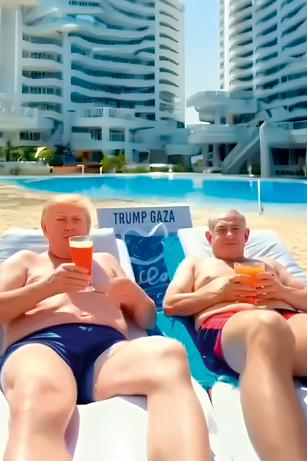 O encontro é reação à descabida ideia lançada por Trump de remover os 2 milhões de palestinos de Gaza, alojá-los em outros países e transformar o território, à beira do Mar Mediterrâneo, na “Riviera do Oriente Médio”. “É um bom plano. Mas não vou forçar nada”, assoprou o presidente dias depois, só para morder de novo ao republicar em suas redes sociais um bizarro vídeo gerado por inteligência artificial de como seria o Gaza Resort, com cenas em que Elon Musk come homus e faz cair uma chuva de dólares enquanto ele mesmo, sem camisa, com Netanyahu ao lado, bebe um coquetel em uma praia cercada de arranha-céus. “O plano esdrúxulo da Riviera deve ser uma tática de negociação. Primeiro, aperta, depois, afrouxa, apresentando uma proposta mais razoável”, afirma Robert Shapiro, professor de ciência política da Universidade Columbia.