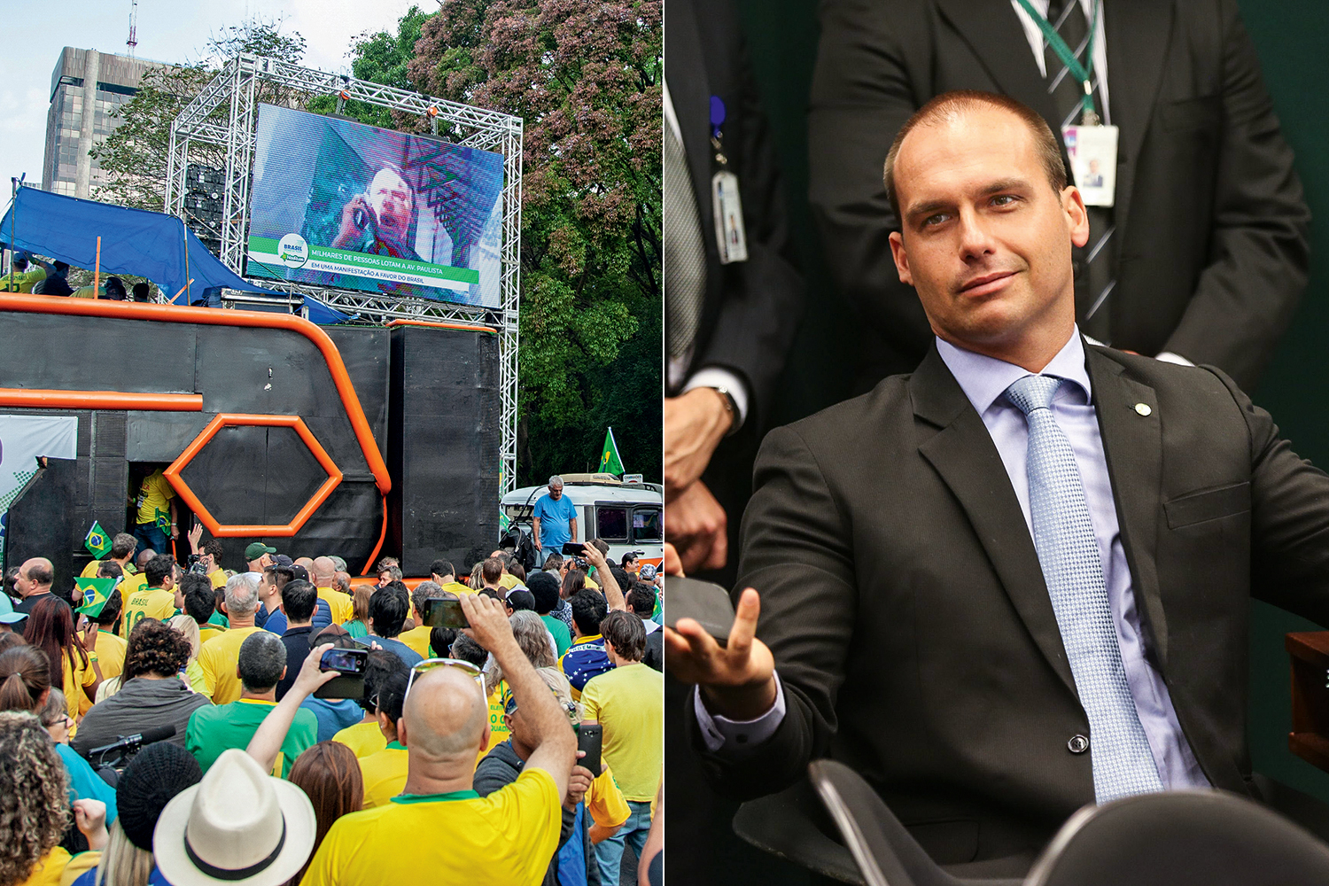 Em carta endereçada a Celso de Mello, Bolsonaro lamentou as declarações do filho, classificando-as como “manifestações mais emocionais”, e afirmou que o Supremo é o “guardião da Constituição”. Soou alentador, mas o alento não durou muito tempo. No mesmo domingo em que o vídeo do filho circulou, Bolsonaro escoiceou com gosto — e num mesmo pacote — a imprensa e a oposição, outras duas instituições basilares da democracia. Sobre a imprensa: “Vocês não terão mais verba publicitária do governo”, disse, referindo-se ao jornal Folha de S.Paulo. Em discurso via vídeo destinado à massa que se manifestava na Avenida Paulista, em São Paulo, também defendeu um Brasil “sem mentiras, sem fake news, e sem Folha de S.Paulo”. A hostilidade ao jornal deve-se à notícia, divulgada no dia 18, de que empresas apoiadoras de Bolsonaro compraram pacotes de disparo em massa de mensagens anti-PT pelo WhastApp em contratos que custaram até 12 milhões de reais — uma ação ilegal e que, levada às últimas consequências, poderia resultar até na cassação da chapa de Bolsonaro. Agora, sobre a oposição: “Essa turma, se quiser ficar aqui, vai ter que se colocar sob a lei de todos nós. Ou vão para fora, ou vão para a cadeia. Esses marginais vermelhos serão banidos da nossa pátria”.