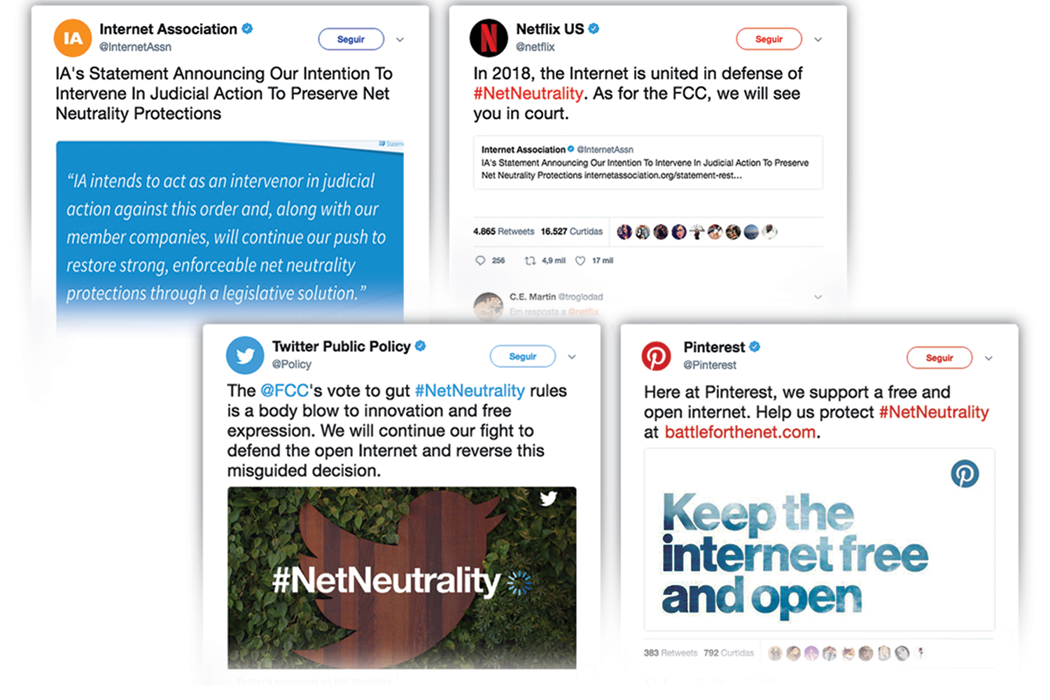 Além da Netflix, outros gigantes se uniram, publicamente, nessa cruzada. Entre eles, Twitter e Kickstarter. Nos bastidores, sabe-se que Google e Facebook planejam integrar o grupo. O consenso é que existe a necessidade de preservar o acesso igualitário à web para que a competição pelo mercado on-line seja justa para todos. Para formalizarem a oposição, as empresas emitiram uma declaração, por meio da Associação da Internet, com a promessa de manter a pressão sobre a FCC com processos judiciais. “Dificilmente a atitude levará à reversão imediata da decisão”, avalia o advogado Renato Opice Blum, coordenador do curso de direito digital do Insper, em São Paulo. “Mas, se com o tempo for provado mesmo que se alimentou uma desigualdade na disputa comercial, esse argumento poderá servir para revogar a medida.” No Brasil, continua tudo como está. O ministro Gilberto Kassab, das Comunicações, já disse que o governo nem pensa em acabar com a neutralidade na rede. É uma excelente notícia.