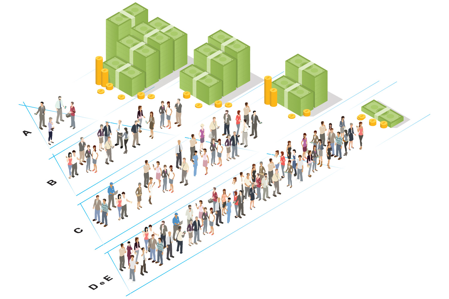 Adotando-se o critério da renda média da classe social, a desigualdade é quase o dobro da estimada anteriormente. Por esses novos critérios, a renda média das famílias mais ricas (classe A) é 32 vezes maior que a renda média das famílias mais pobres (classes D e E). Levando-se em conta apenas os dados do IBGE, a diferença ficava em dezoito vezes. Tamanha disparidade ocorre porque as pesquisas tradicionais têm dificuldade em captar os rendimentos dos mais ricos. Com os dados da Receita, a conta ficou mais transparente.