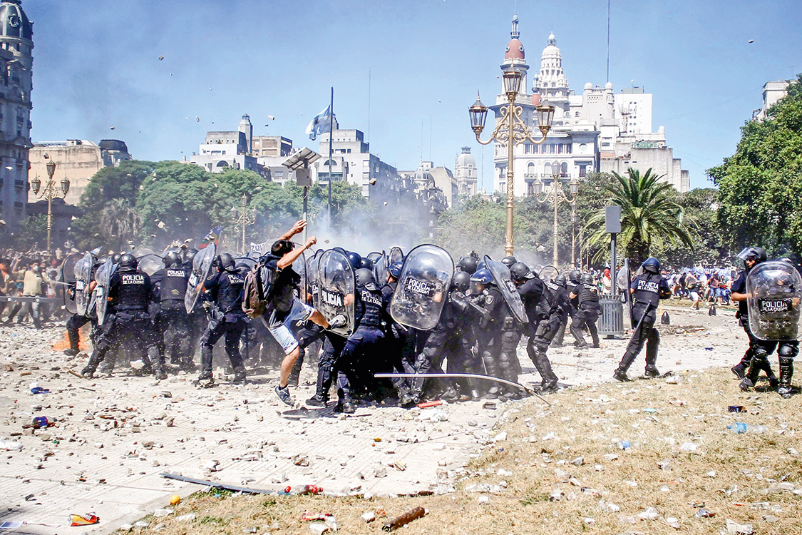 Se não há gás lacrimogêneo na rua, os ajustes econômicos não estão sendo duros o bastante. Assim diz um experiente banqueiro brasileiro sobre a falta de ambição das reformas no Brasil. Sem que as mudanças doam no bolso nem toquem em privilégios, os resultados serão pífios, argumenta o executivo. Por essa métrica, e apenas por ela, a nova regra de reajustes das aposentadorias aprovada na Argentina foi uma reforma exemplar. O projeto do presidente Mauricio Macri levou uma multidão às ruas. Houve protestos durante toda a segunda-feira 18. Uma greve geral afetou dezenas de voos. Militantes peronistas, sindicalistas e estudantes entraram em choque com a polícia na frente do Congresso, em Buenos Aires. As seis horas de conflitos deixaram um saldo de 162 feridos (88 policiais) e 68 detidos.